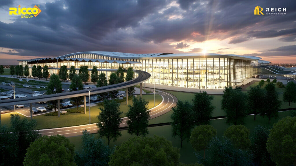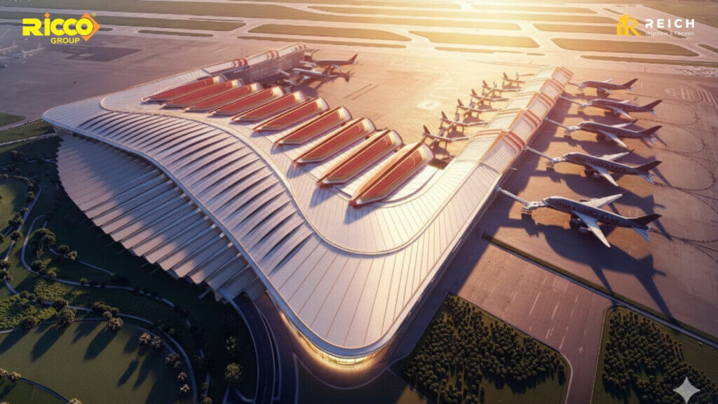 Với đặc thù của một công trình sân bay, nơi vận hành liên tục với cường độ cao, hệ facade nhôm kính sẽ đóng vai trò quan trọng trong việc định hình trải nghiệm không gian và hình ảnh kiến trúc của toàn bộ công trình.
